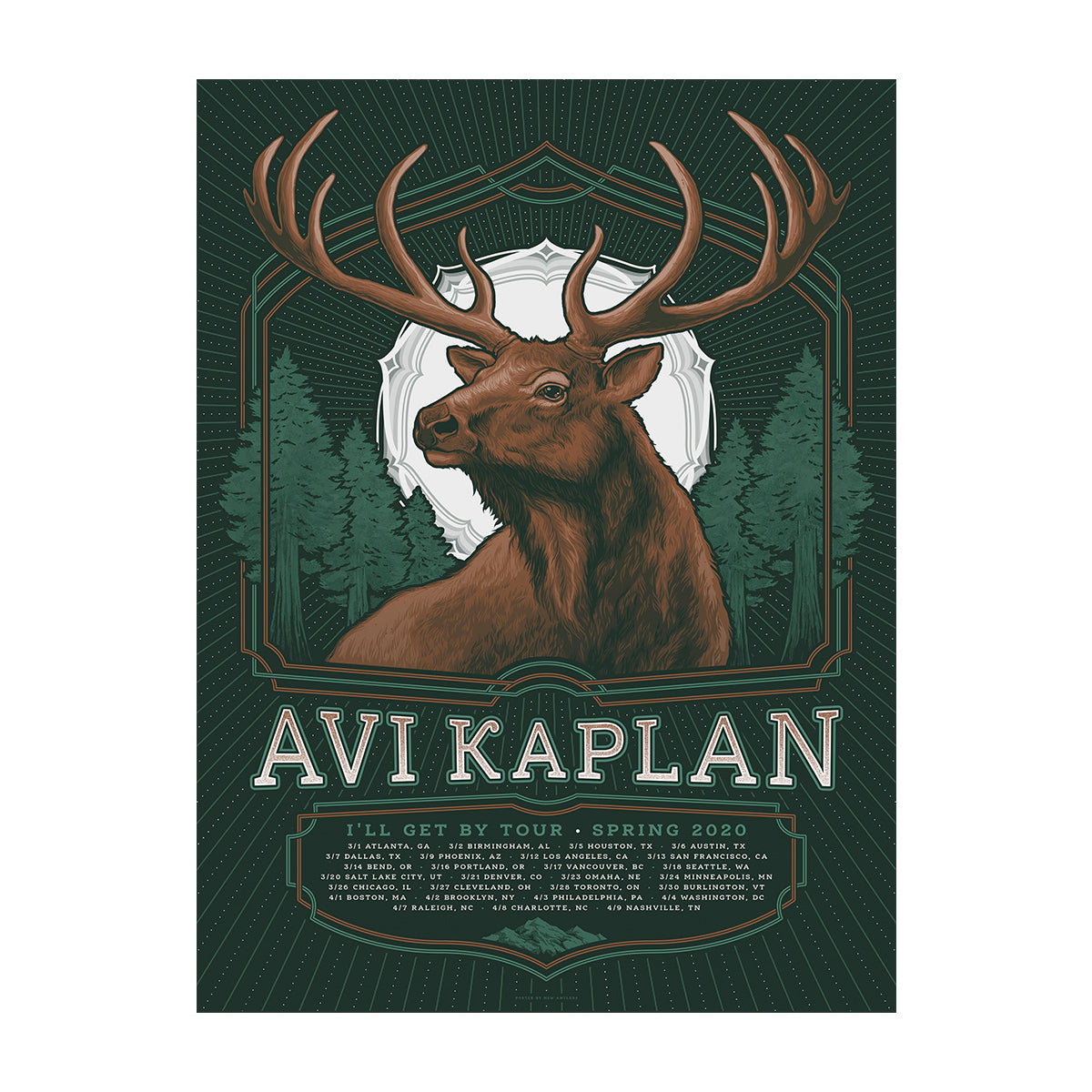 18" x 24" screenprinted poster for the 2020 I'll Get By Tour. Designed by Aaron Powers.